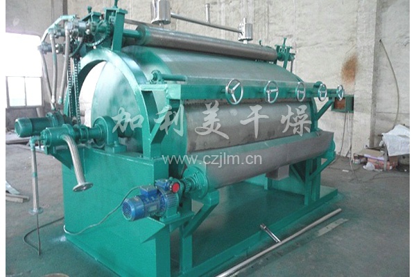 滾筒刮板干燥機(jī)是一種內(nèi)加熱傳導(dǎo)型轉(zhuǎn)動(dòng)連續(xù)干燥設(shè)備。旋轉(zhuǎn)的滾筒通過(guò)其下部料槽,粘附著一厚度的料膜,熱量通過(guò)管道輸送至滾筒內(nèi)壁,傳導(dǎo)到滾筒外壁,再傳導(dǎo)給料膜,使料膜中的濕度獲...