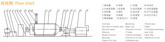 燃料通過燃燒器燃燒,產(chǎn)生高溫燃氣。并借助具有強化換熱措施的熱風(fēng)爐將高溫燃氣的熱量傳導(dǎo)給被加熱的空氣,高溫燃氣經(jīng)熱量散發(fā)后溫度降低至250℃后排到大氣中。需加熱的空氣通過選配的鼓風(fēng)機強送入熱風(fēng)爐,吸熱后溫度升至額定值從熱風(fēng)出口處送出,當熱風(fēng)溫度達到額定溫度上限時,燃燒器會自動停止燃燒或自動轉(zhuǎn)為小火焰燃燒,當熱風(fēng)溫度降低到額定下限溫度時,燃燒器又會重新點燃運行或轉(zhuǎn)為大火燃燒,升溫的速度可以調(diào)節(jié)進風(fēng)閥的開度來實現(xiàn)。